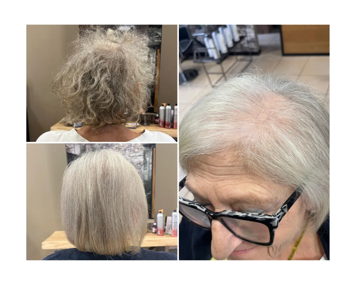 Dopo alcuni mesi di trattamenti in salone con ossigeno dermo infuso e fiala specifica, più tanta passione, costanza e amore da parte del marito che applicava le nostre fiale a casa sulla cute della cliente, ecco i risultati... ECLATANTI!!!