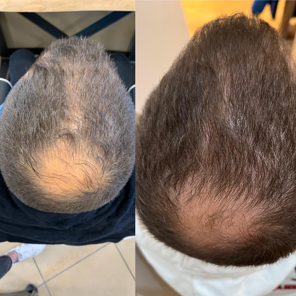 In questo Caso Specifico, il risultato che avevamo spiegato al cliente e che si poteva onestamente raggiungere, era nella parte centrale della testa, dove guardando la foto a sinistra si era formata una sorta di T che partiva dalla nuca fino a quasi alla fronte.